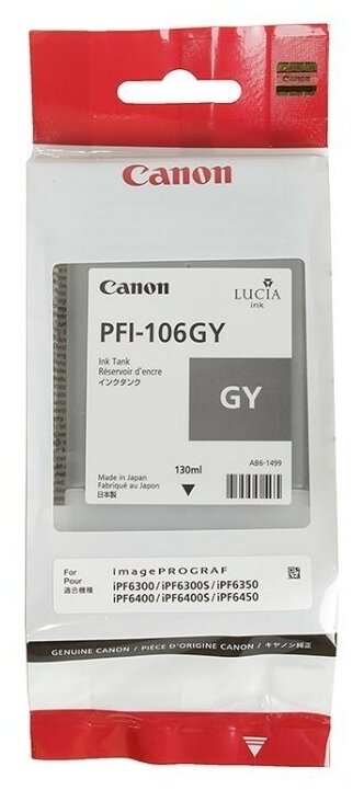 Картридж струйный Canon PFI-106 GY 6630B001 серый для Canon для iPF6300S/6400/6450