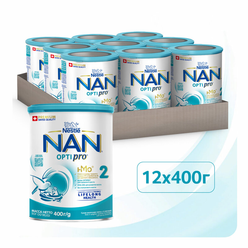 Молочная смесь Nestle NAN 2 OPTIPRO для роста, иммунитета и развития мозга, с 6 месяцев, 400 г 2 шт