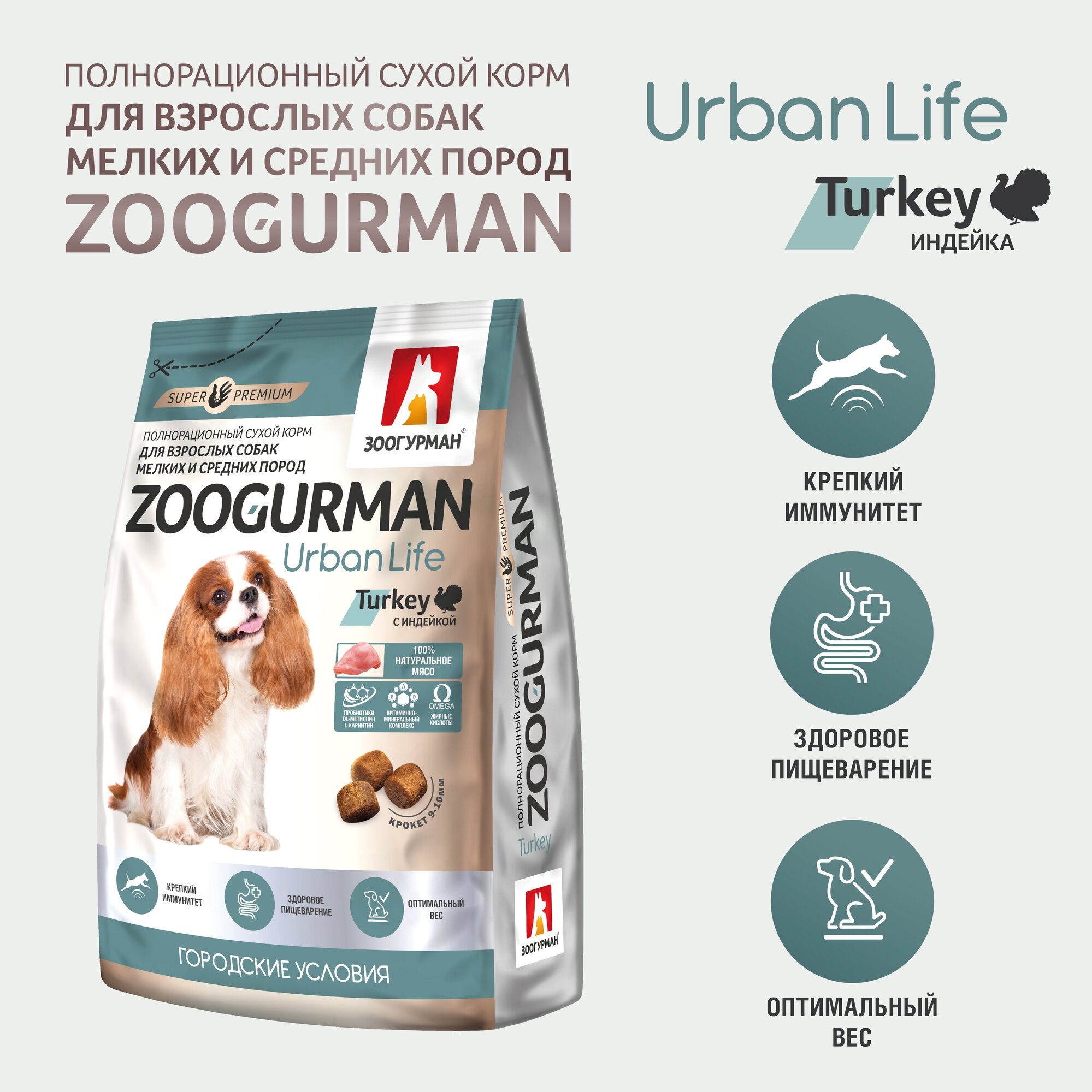 Купить Зоогурман Urban Life для взрослых собак мелких и средних пород живущих в городских условиях индейка 1,2 кг