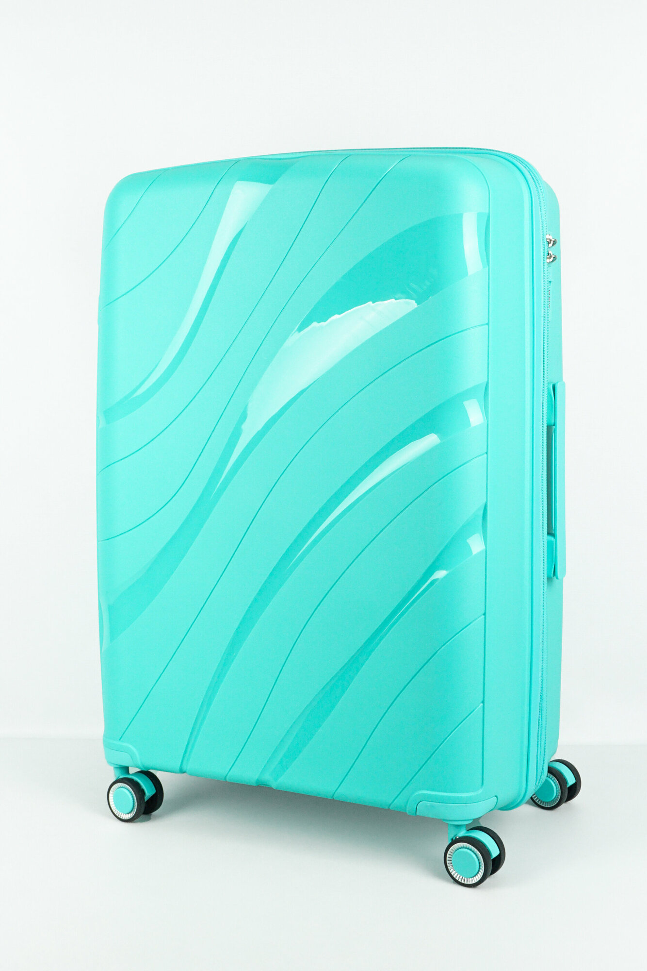 СохранитьЧемодан Sweetbags большой из полипропилена с расширением на 4-х колесах с TSA замком (волны) мятный XL интересное: