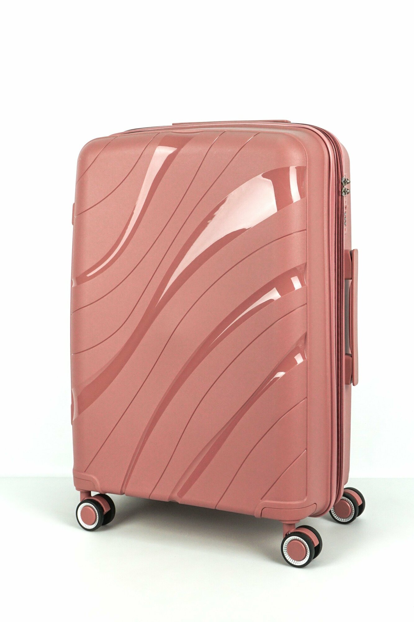 СохранитьЧемодан Sweetbags средний из полипропилена с расширением на 4-х колесах с TSA замком (волны) чайная роза M+ интересное: