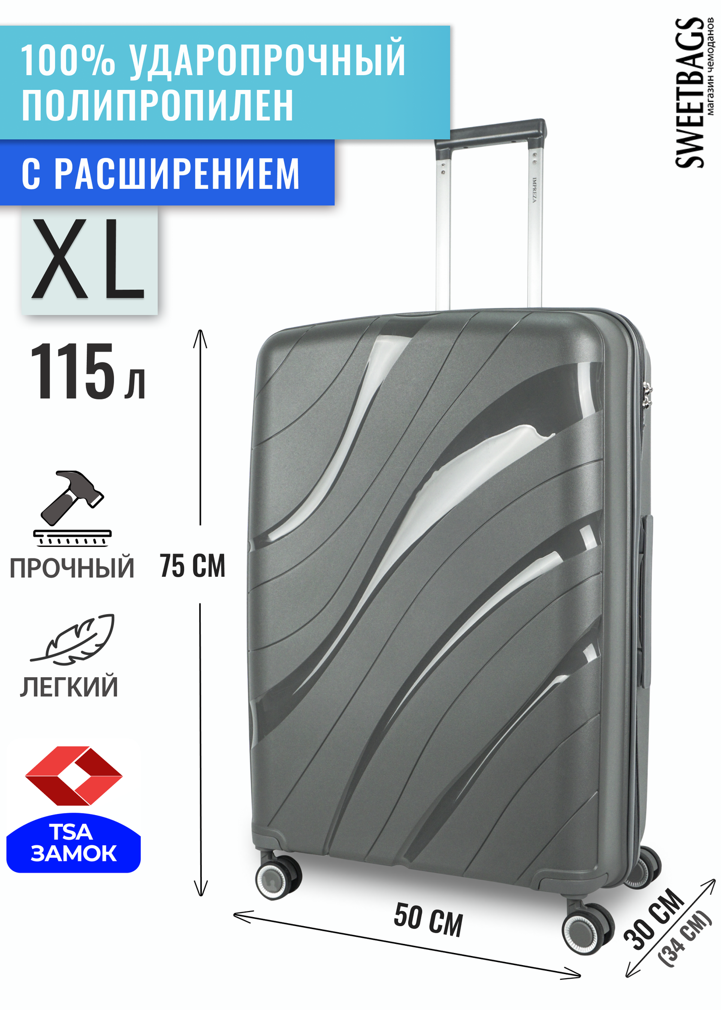 СохранитьЧемодан Sweetbags большой из полипропилена с расширением на 4-х колесах с TSA замком (волны) темно-серый XL интересное: