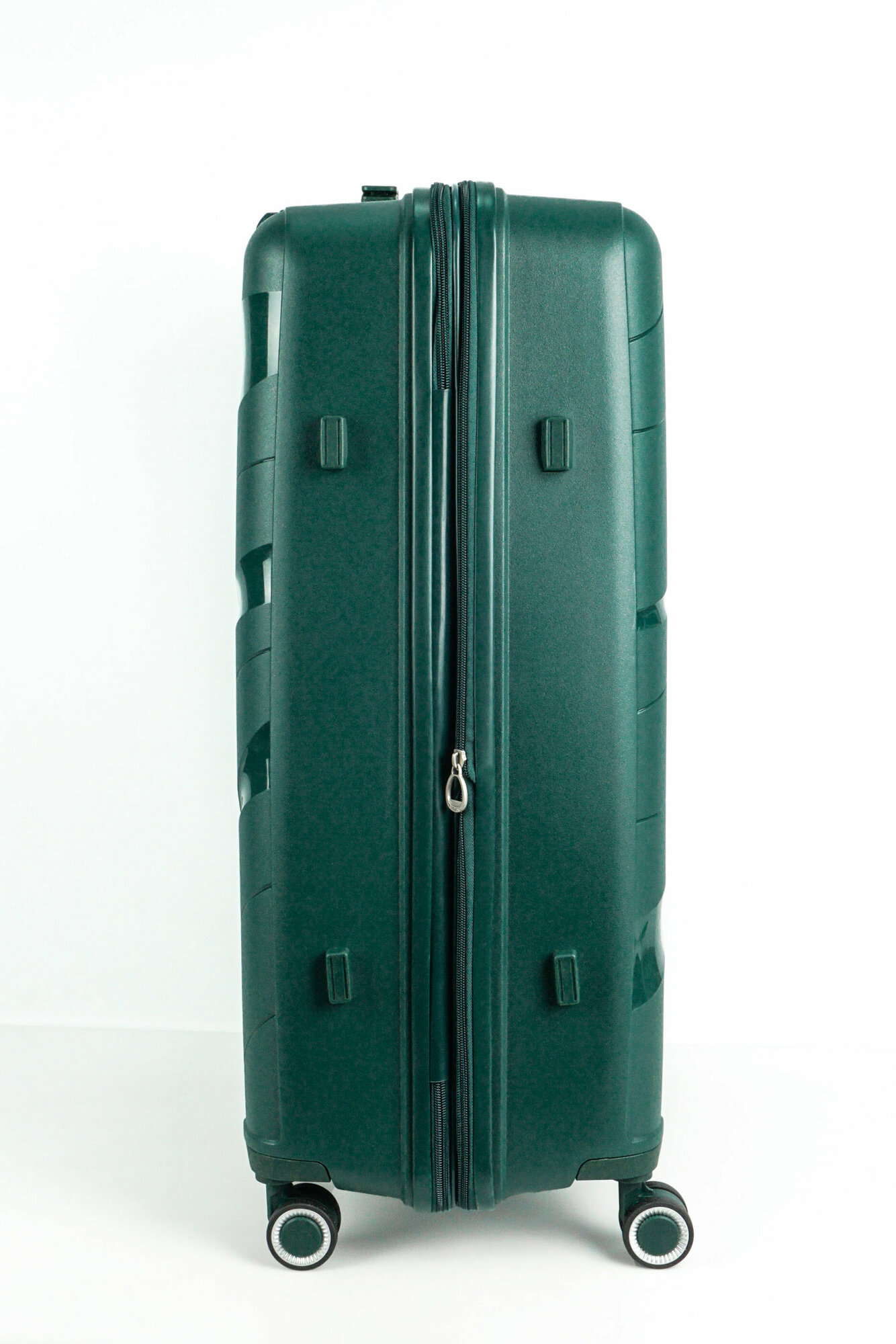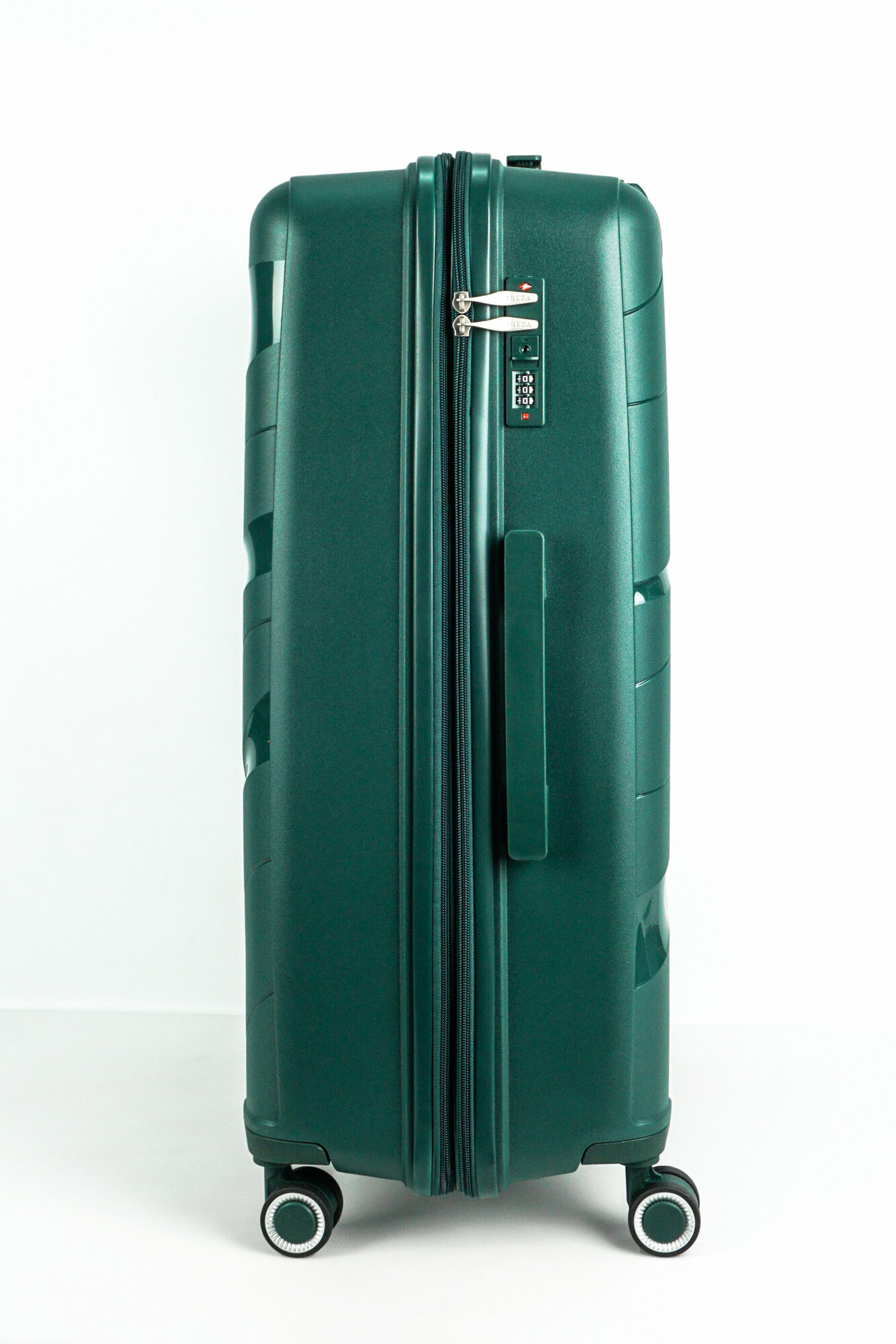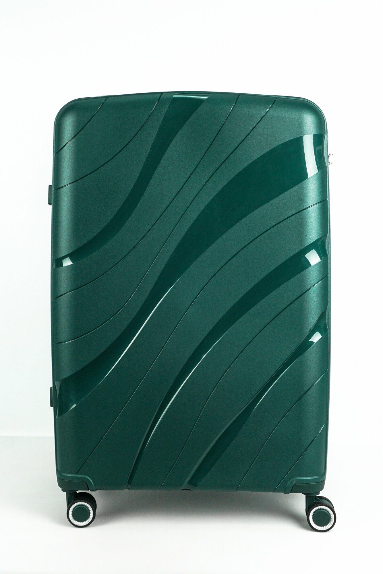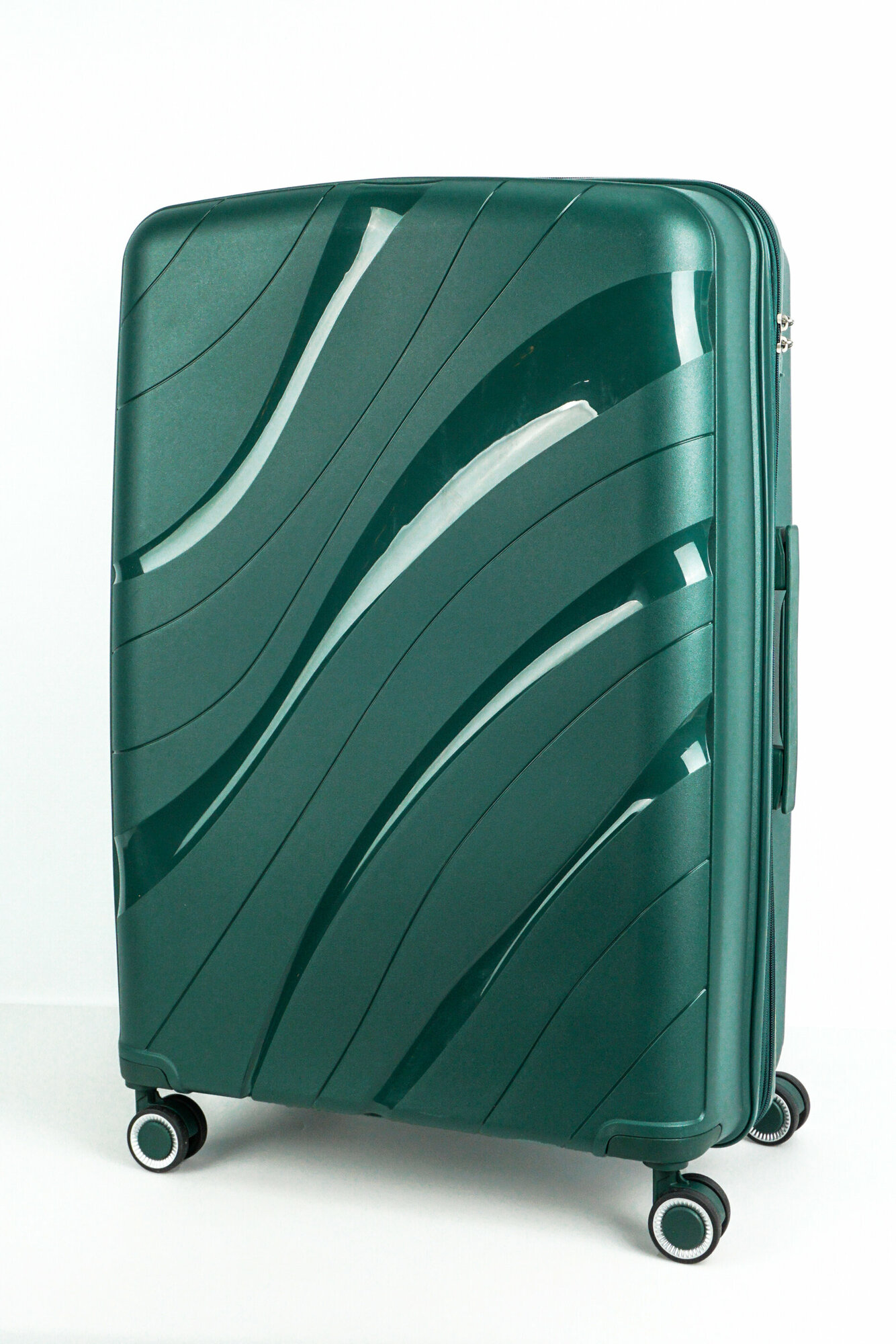 Купить Чемодан Sweetbags большой из полипропилена с расширением на 4-х колесах с TSA замком (волны) темно-зеленый XL