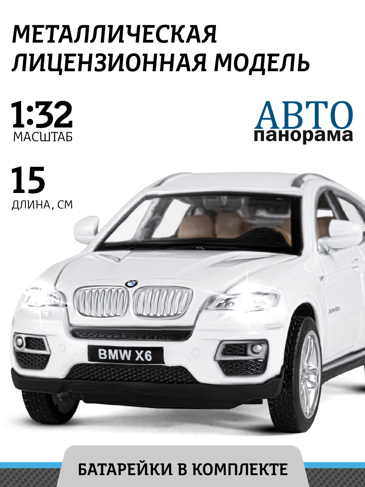 Купить ТМ "Автопанорама" Машинка металлическая 1:32 BMW X6, белый, свет, звук, откр. двери, капот и багажник, инерция, в/к 17,5*13,5*9 см JB1251295