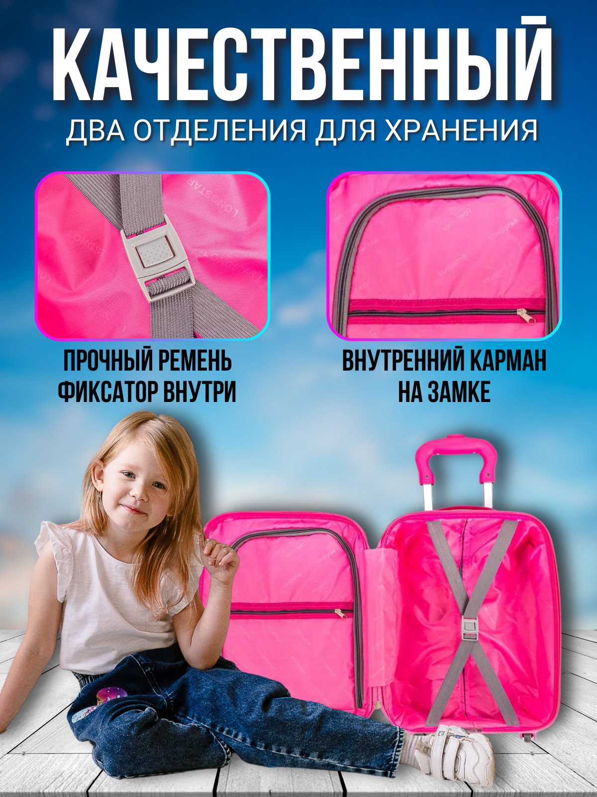 Чемодан дет. Котик 20", 35х20х40, отд. на молнии, 4 колеса, розовый