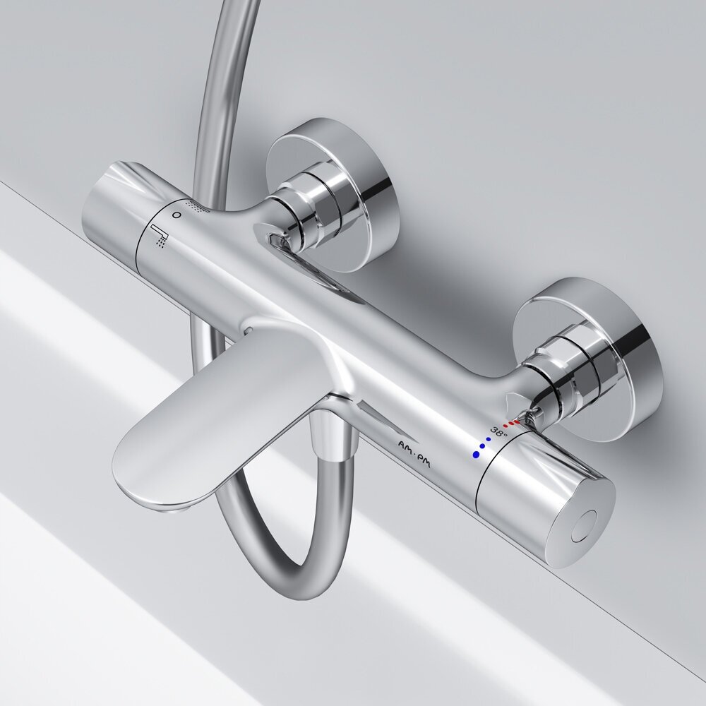 Смеситель для ванны и душа AM.PM Like F8050000 термостат, стопор безопасности, высокочувствительный термостатический картридж, регулируемый аэратор