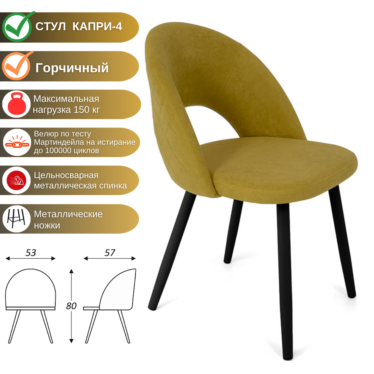 Стул Капри-4 велюр горчичный Т176, каркас черный R32