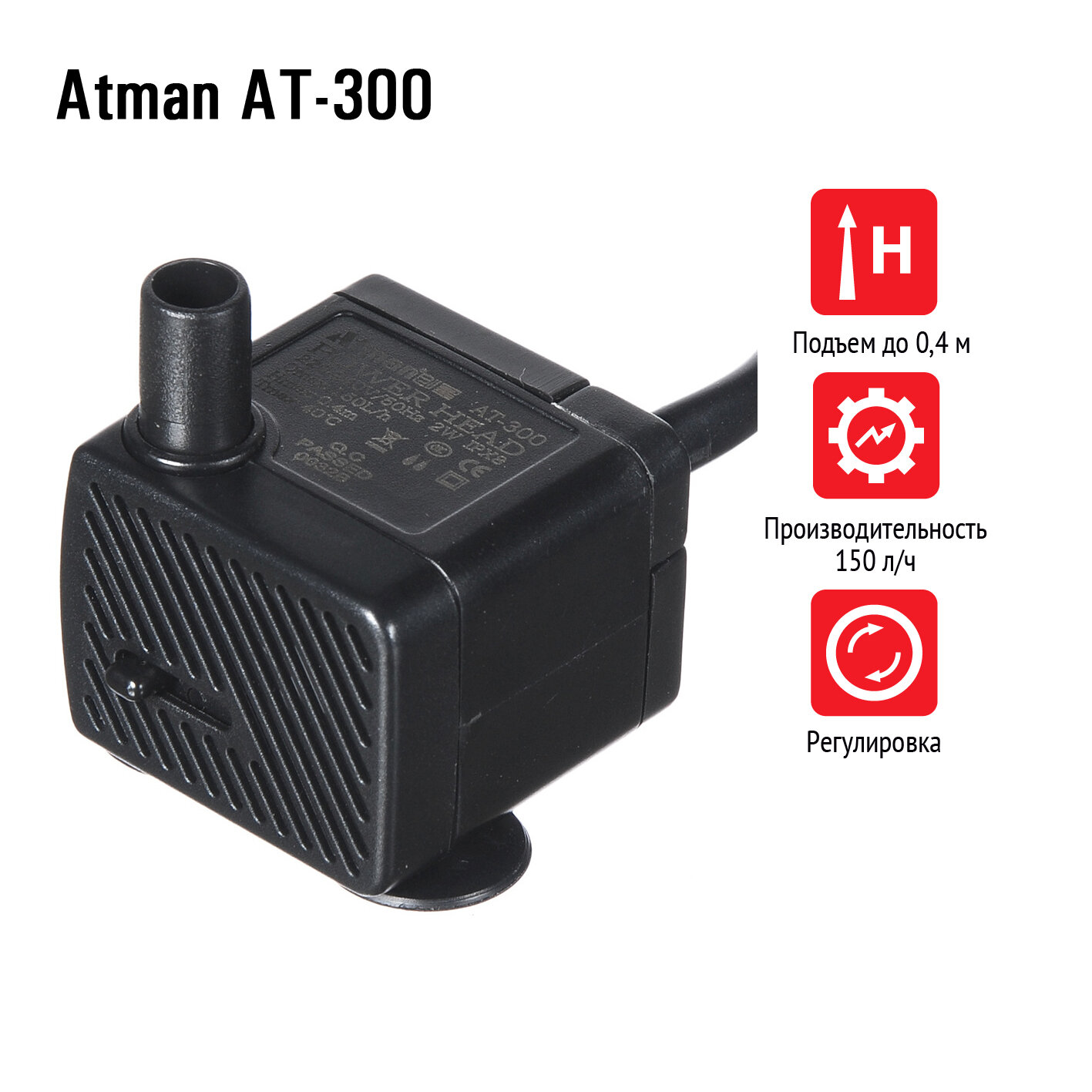 Помпа подъемная Atman AT-300, 150 л/ч, 2W, подъем до 0,4м интересное: