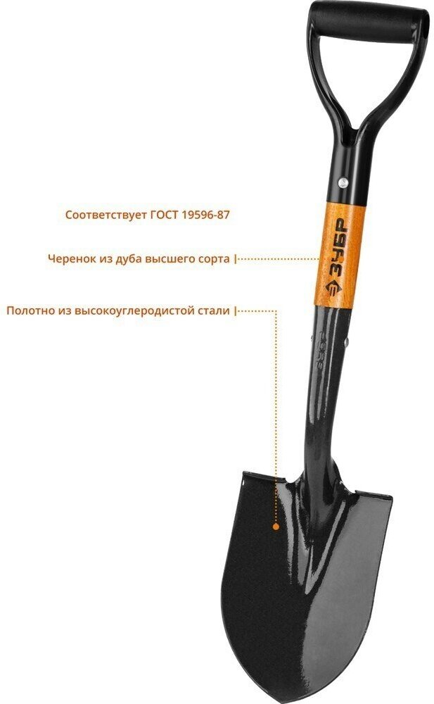 ЗУБР Завидово 210х150х660 мм, деревянный черенок с рукояткой, Автомобильная лопата (39355)