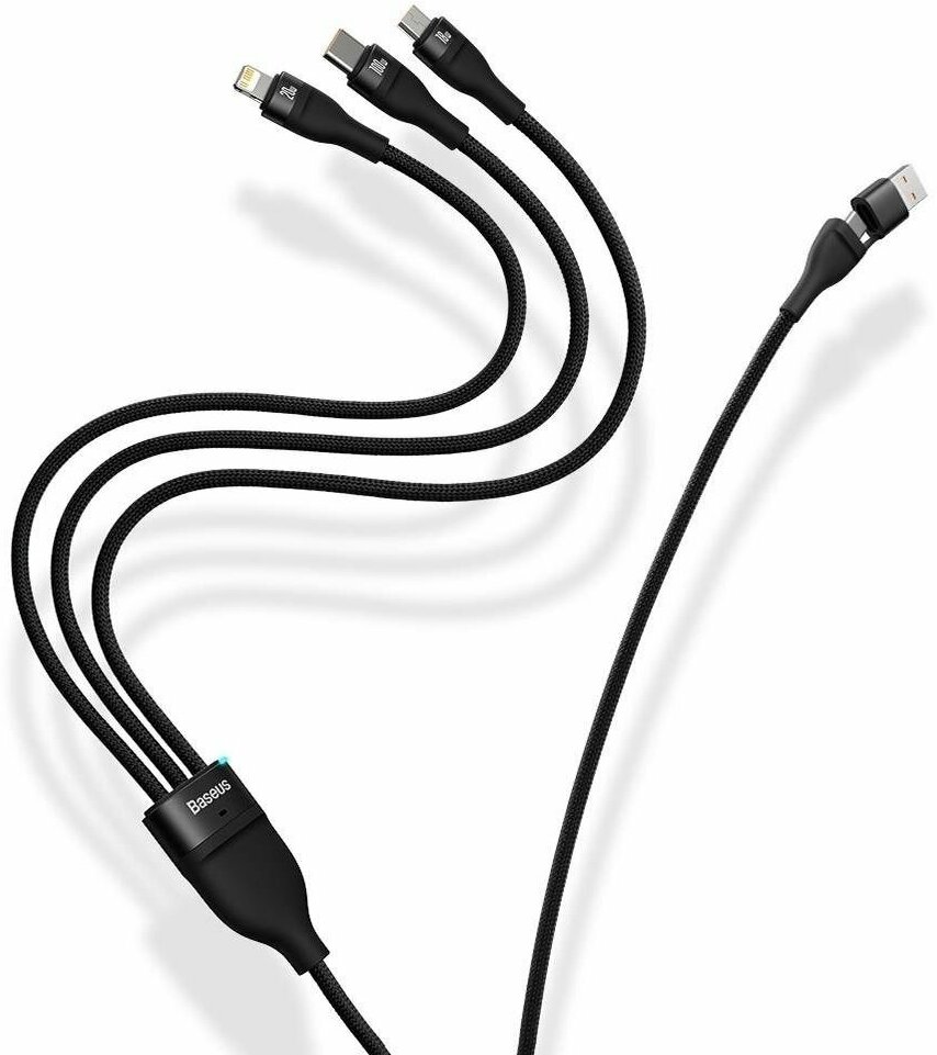 Кабель USB BASEUS Flash Series Ⅱ 2 в 3 USB/Type-C - Type-C + Lightning + MicroUSB, 6A, 100W, 1.2 м, черный