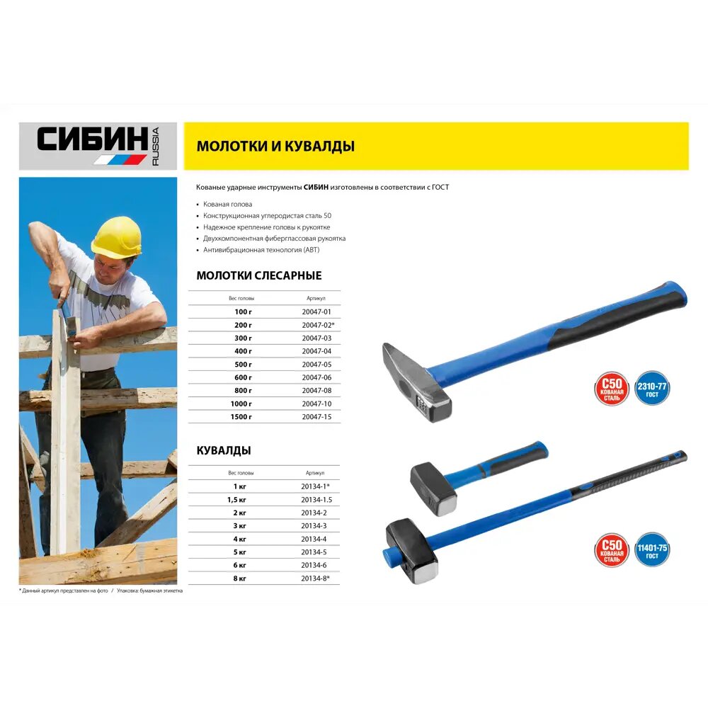 СИБИН 1.5 кг кувалда с фиберглассовой рукояткой