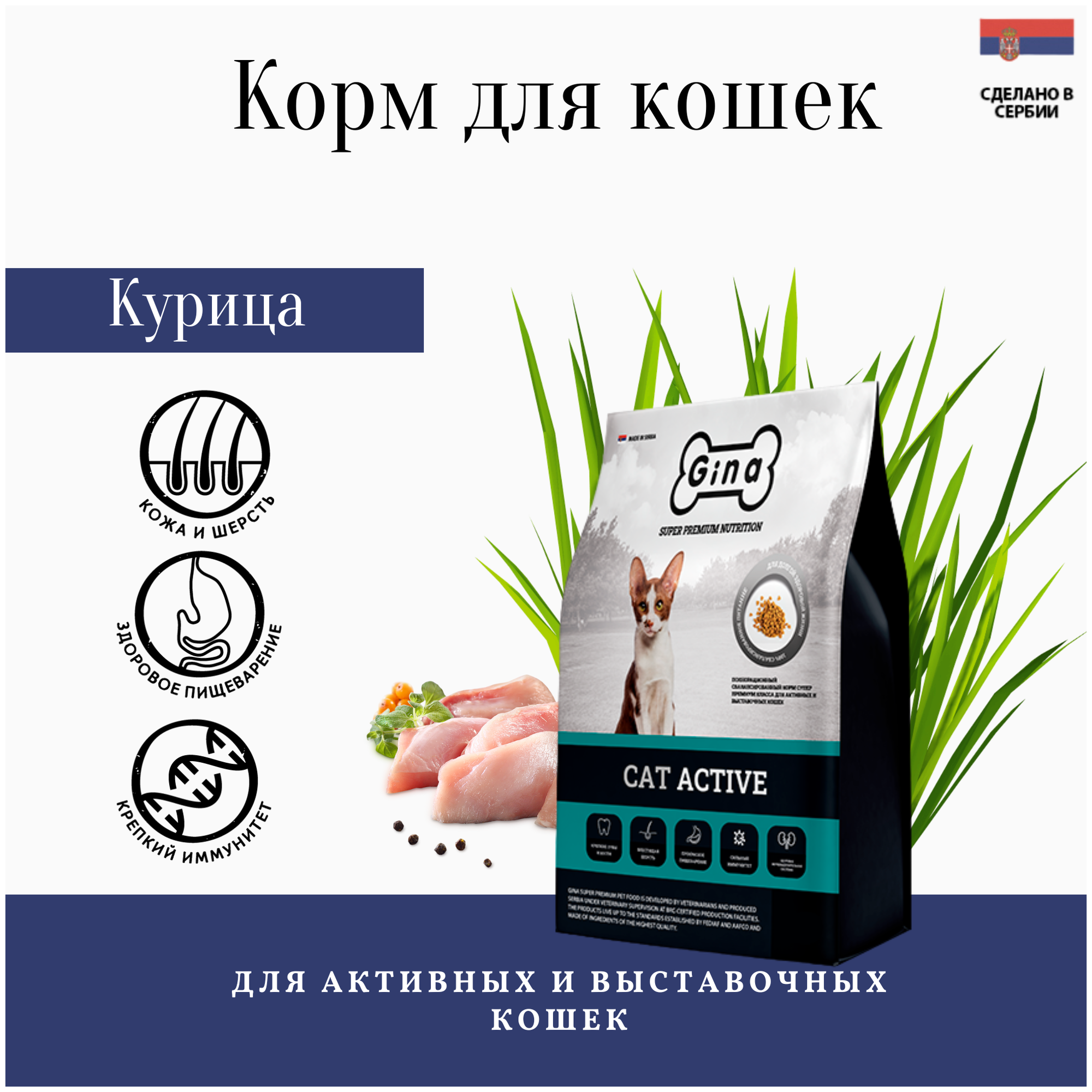 Gina Cat Active сухой корм для взрослых активных и выставочных кошек с цыпленком - 1 кг