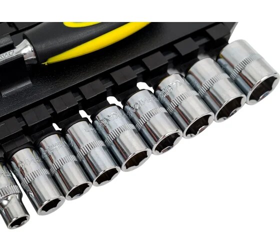| Головки торцевые подробно | 1/4": 4, 4,5, 5, 6, 7, 8, 9, 10, 11, 12, 13, 14 мм; со вставками 1/4": SL4, SL5,5, SL7, PH1, PH2, PH3; T10, T15, T20, T25, T30; H3, H4, H5, H6 |