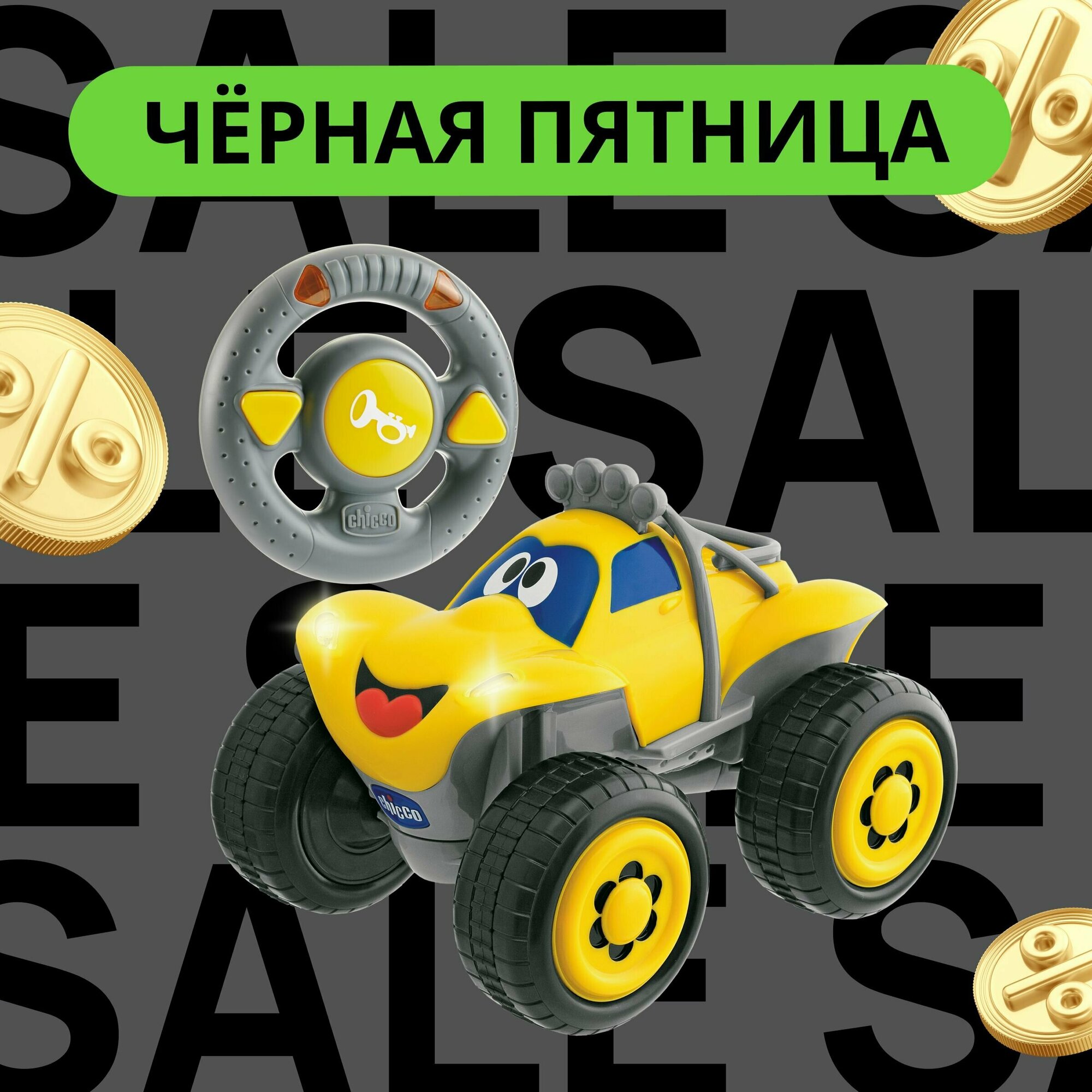 Игрушка машинка на радиоуправлении Chicco Билли большие колёса для детей от 2 до 6 лет жёлтая, подарок ребенку