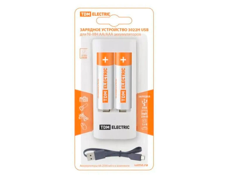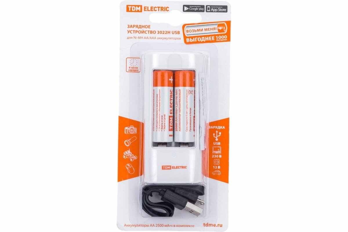 Зарядное устройство 3022Н (300 mA 2 слота АА/ААА 1 кан.+2xAA2500 USB) TDM SQ1702-0103