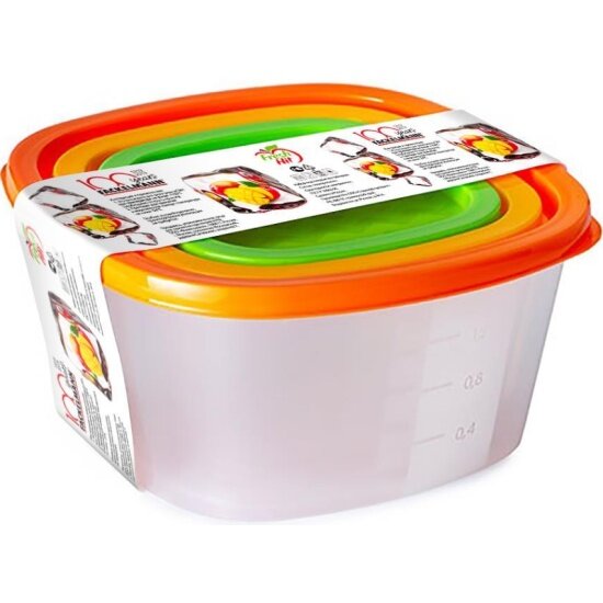 Набор квадратных контейнеров с крышками Fackelmann 76052 (0,23л, 0,5л ,0,9 л) 3 штуки