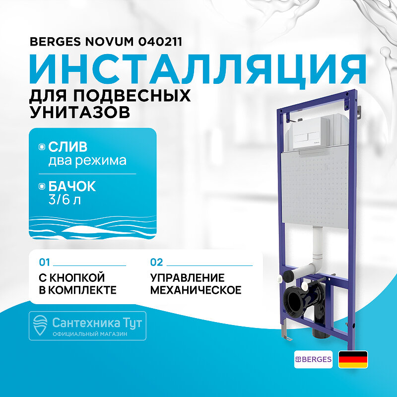 Berges Wasserhaus Инсталляция NOVUM L1 040211 для подвесного унитаза в комплекте с белой кнопкой_NEW