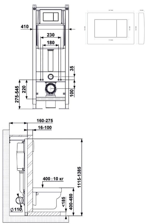 Комплект унитаза с инсталляцией Berges Wasserhaus Atom 042430 с сиденьем Микролифт и Белой клавишей смыва