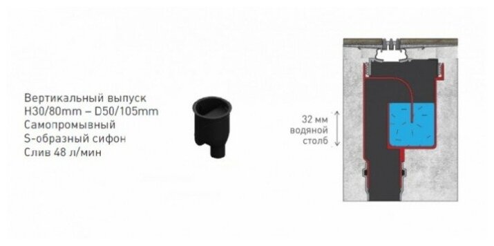 Желоб BERGES водосток SUPER Slim 400, хром глянец, S-сифон D50/105 H50 вертикальный, арт 091077