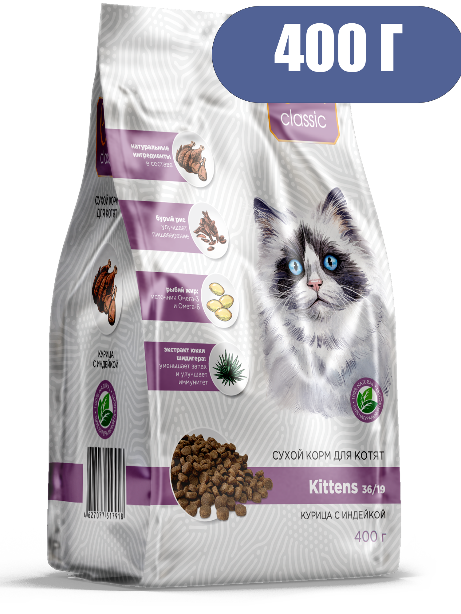 Сухой корм CLAN CLASSIC Kittens 36/19 для котят курица с индейкой 400г