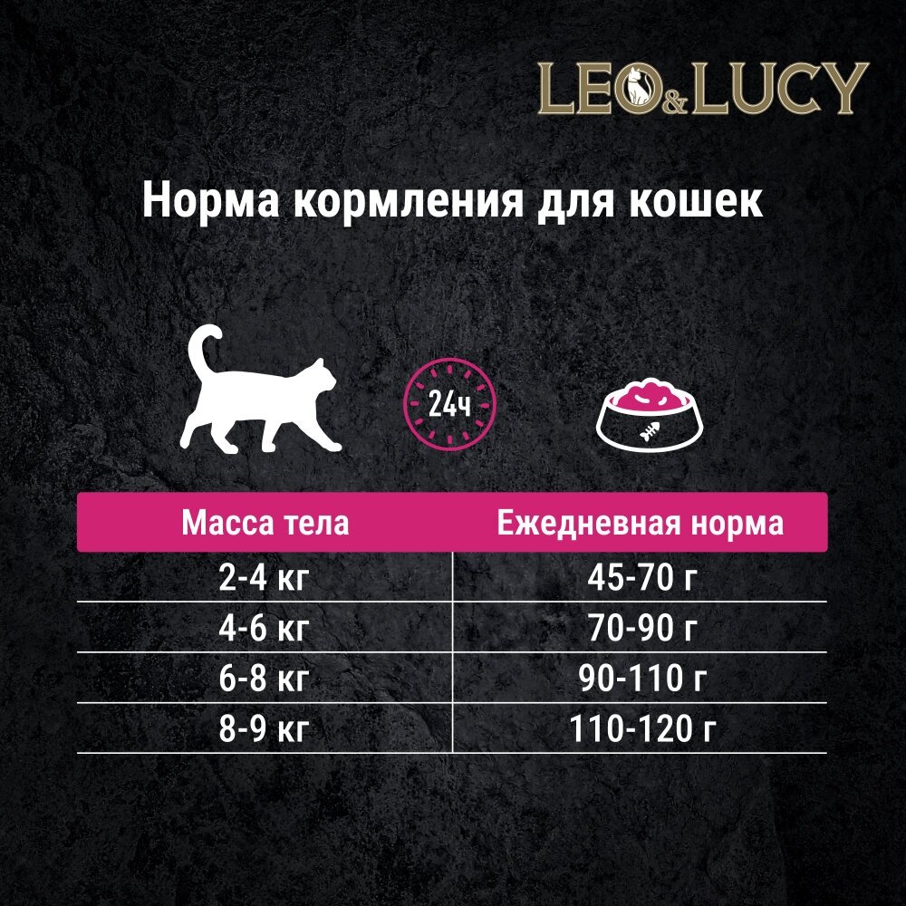 LEO&LUCY сухой холистик корм полнорационный для взрослых кошек с индейкой, ягодами и биодобавками, подходит для стерилизованных и пожилых, 400 г