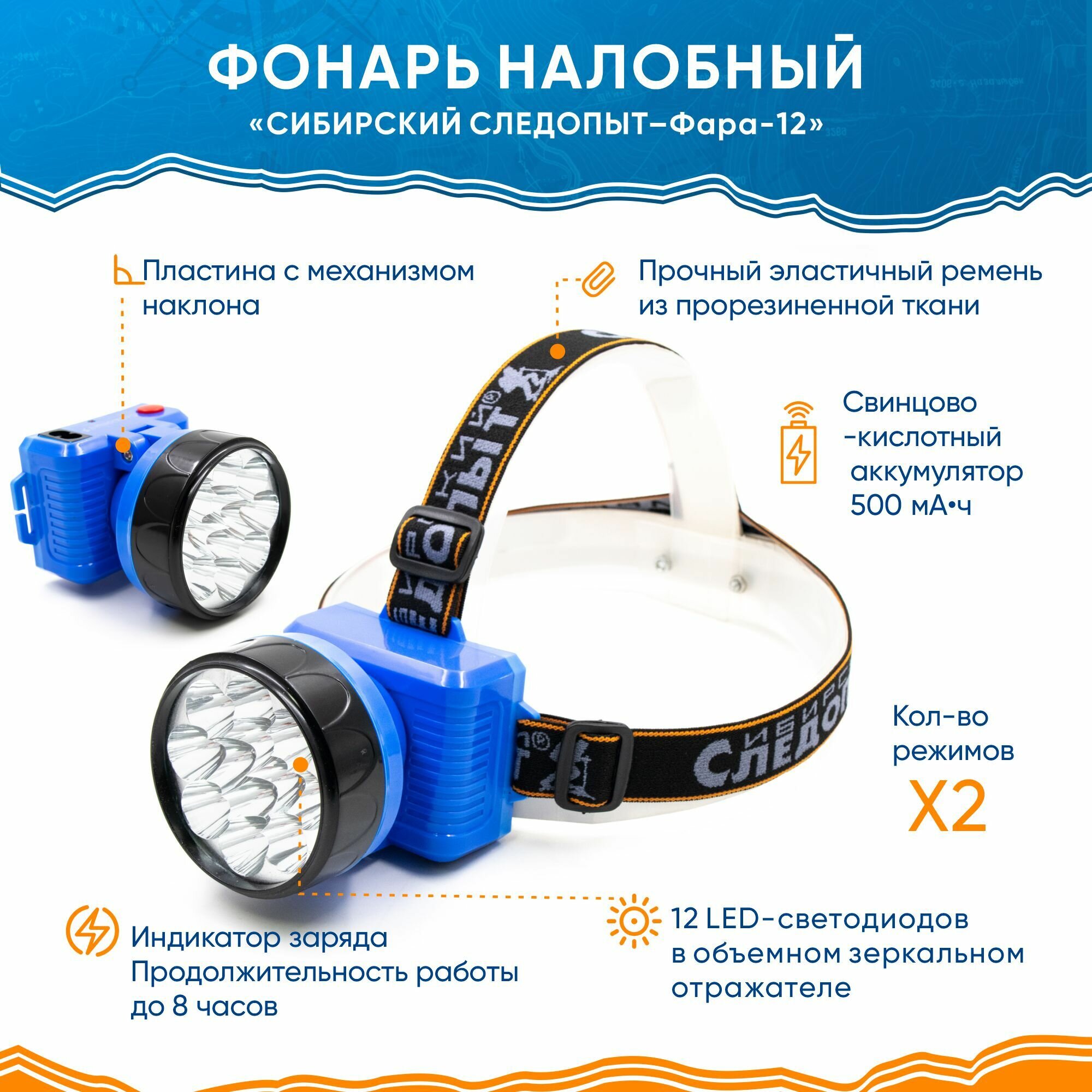 Фонарь налобный аккумуляторный "сибирский СЛЕДОПЫТ-Фара-12", 12L