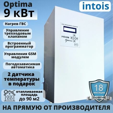 Электрический котел отопления, электрокотел Интоис Оптима, 9 кВт, настенный, одноконтурный.