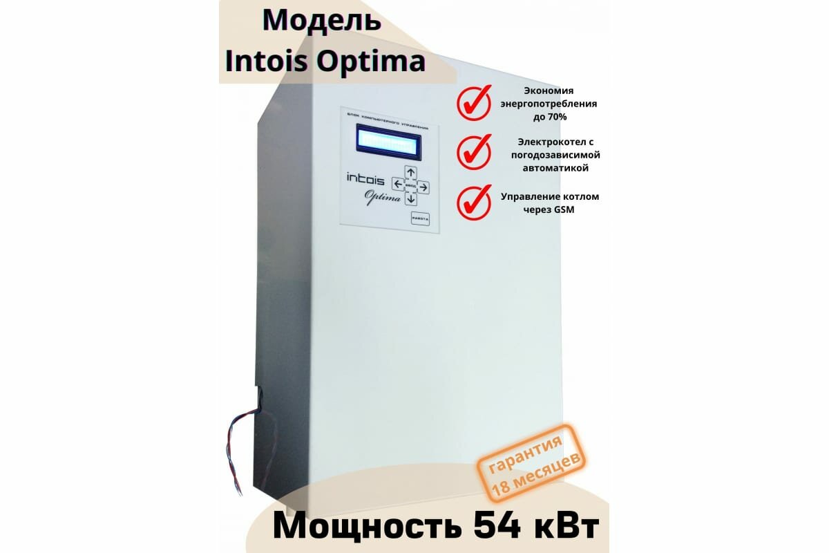 Электрический котел отопления, электрокотел Интоис Оптима, 54 кВт, настенный, одноконтурный.