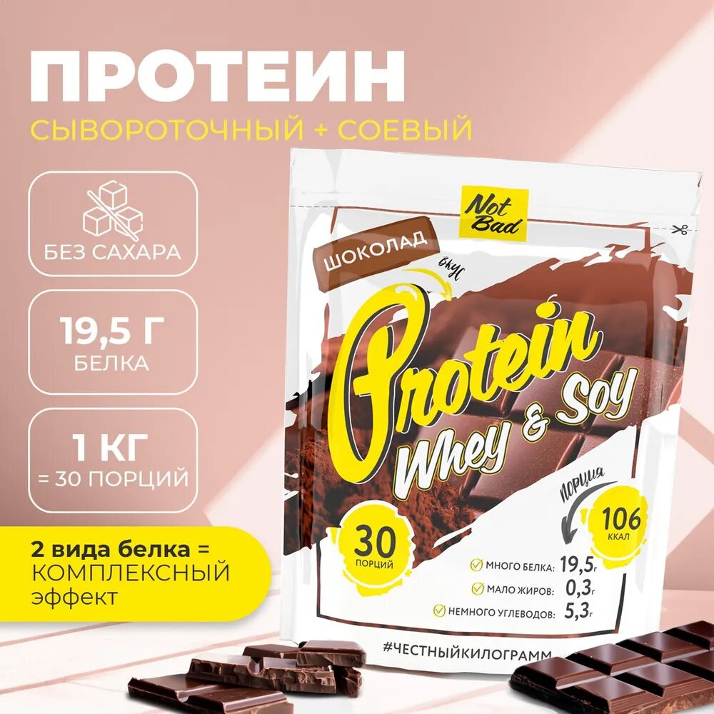 NOTBAD Whey & Soy Protein Соевый и сывороточный протеин 1000 г (Шоколад)