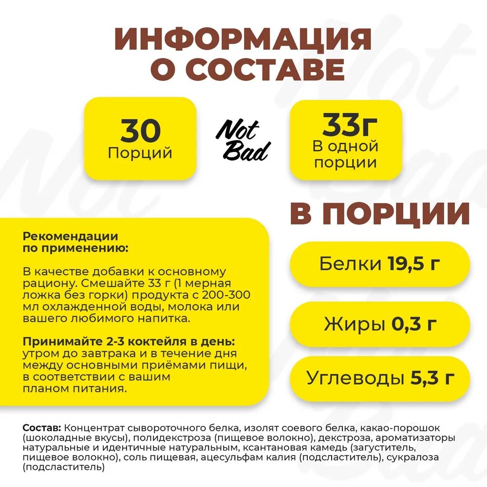 Ниже Вы можете прочитать отзывы на NotBad Protein Whey Soy 1000g (Шоколад), ознакомится с подробными характеристиками, посмотреть интересные обзоры и фотографии на NotBad Protein Whey Soy 1000g (Шоколад).