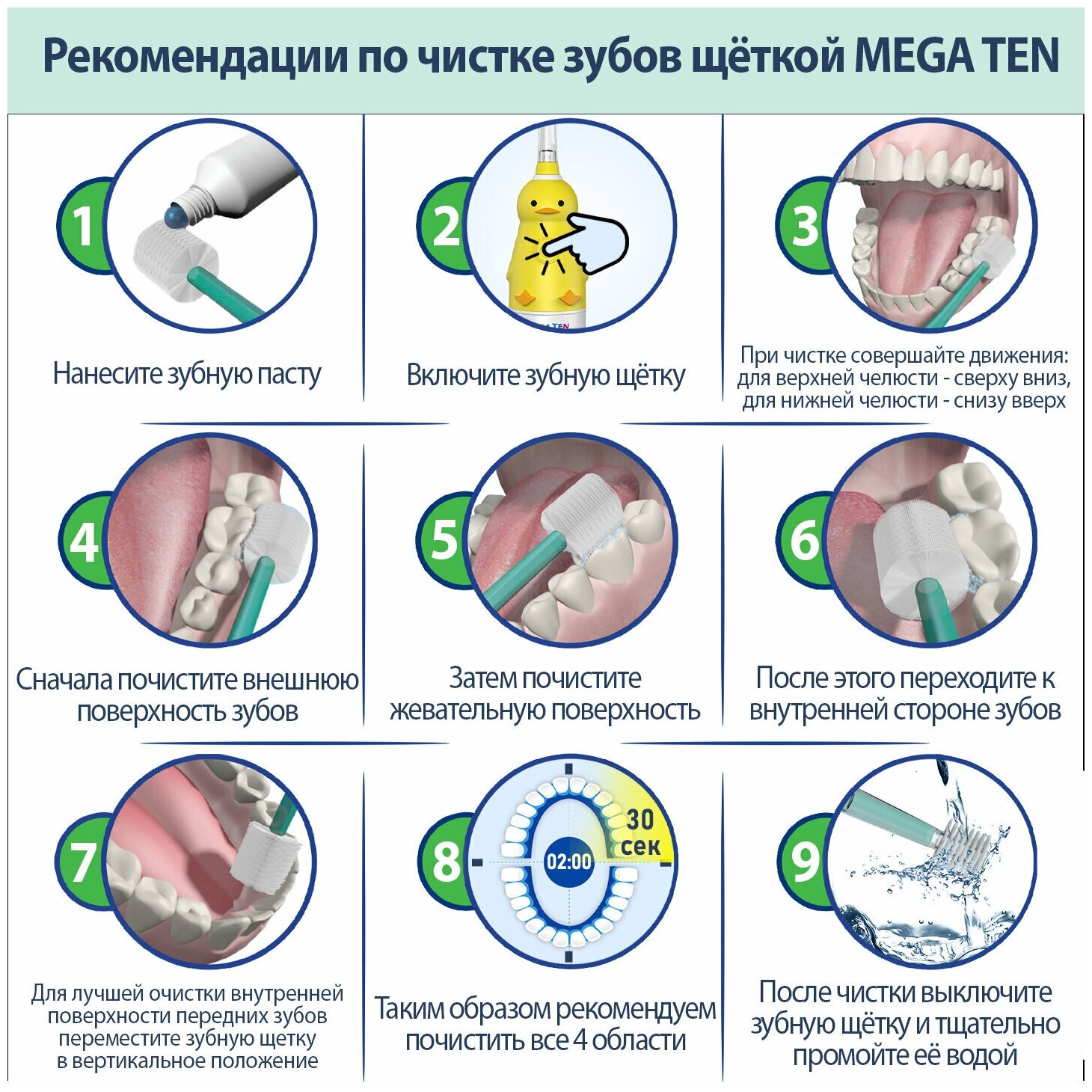 | Дополнительные функции | подходит для детей / режим привыкания / таймер времени чистки / таймер смены области чистки |