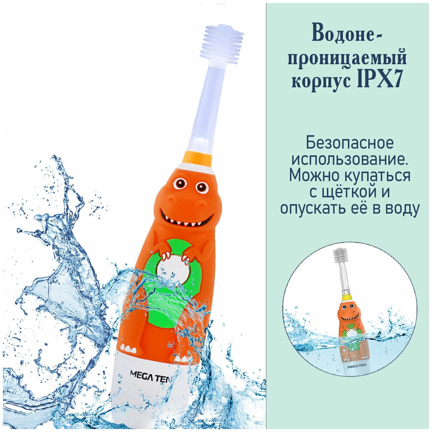 Электрическая детская звуковая зубная щетка "Динозавр" Megaten Mega Ten Kids Sonic интересное:
