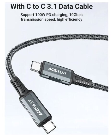 Мультифункциональное зарядное устройство ACEFAST A17 GaN 65W (Type-C PD60W + USB 3.0 5W + HDMI 4K@60Hz) + Кабель Type-C to Type-C 3.1, 1.8м, Белый