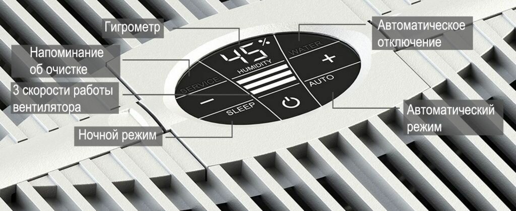 | Особенности | гигростат / дисплей / регулировка скорости вентилятора/интенсивности испарения |