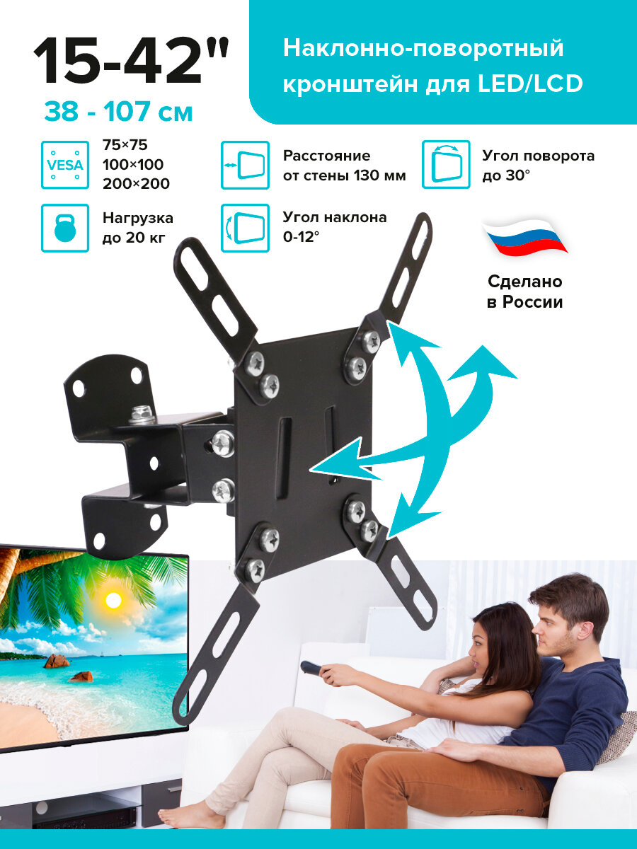 Кронштейн для ТВ Наклонно-поворотный 20кг 15 42" черный Absolute Comfort. Крепление (держатель) для тв монитора на стену vesa интересное: