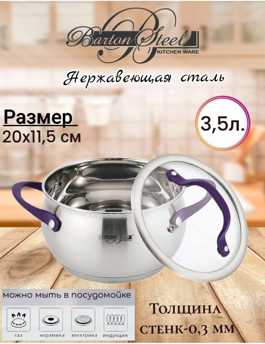 Кастрюля из нержавеющей стали 5,5 л, Barton Steel