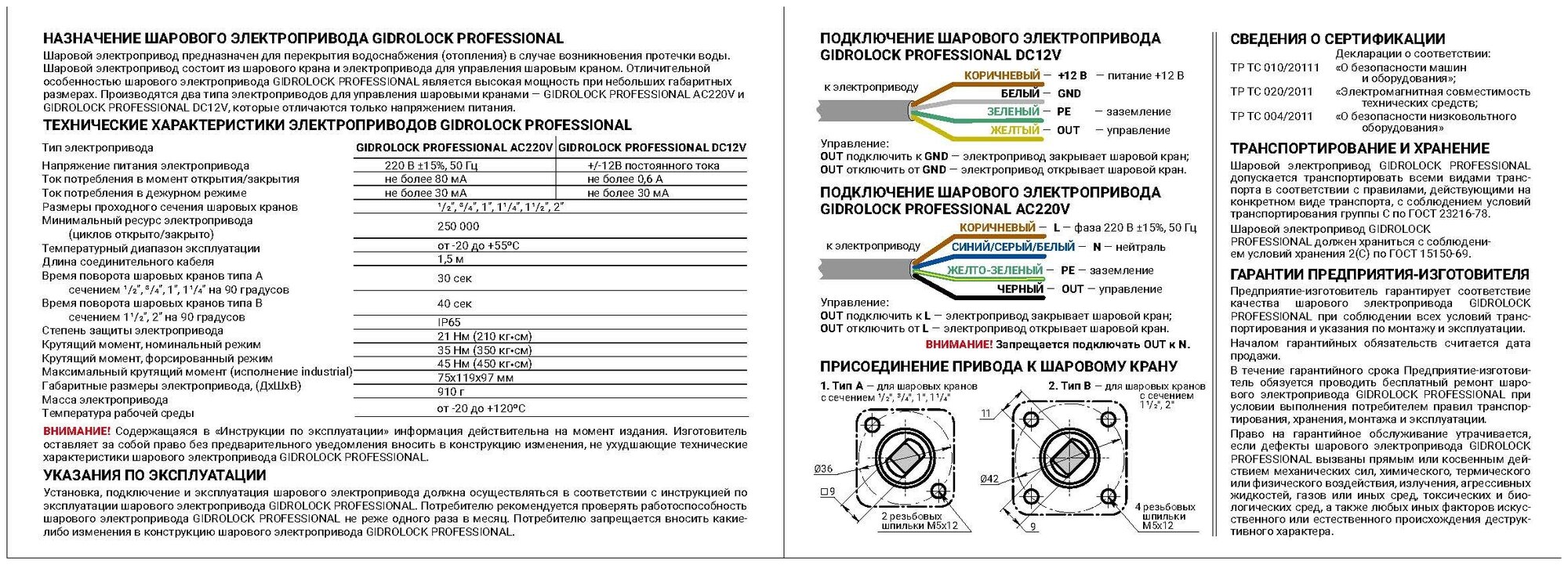 | Опции | Отличительной особенностью электропривода GIDROLOCK PROFESSIONAL BS являются быстрый, удобный монтаж и ручное управление краном. |