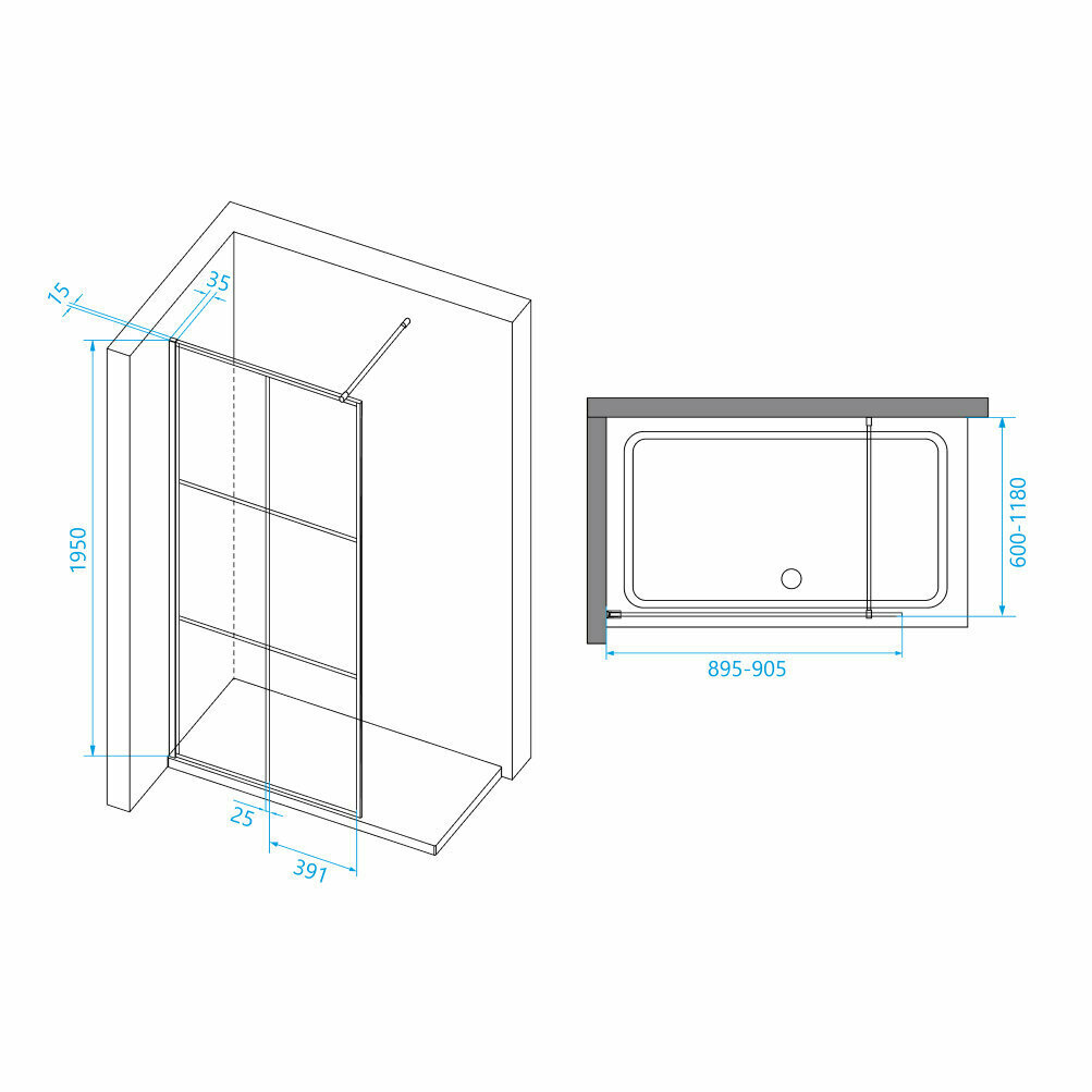 Душевая перегородка RGW Walk In WA-010B 90х195 стекло прозрачное, профиль черный