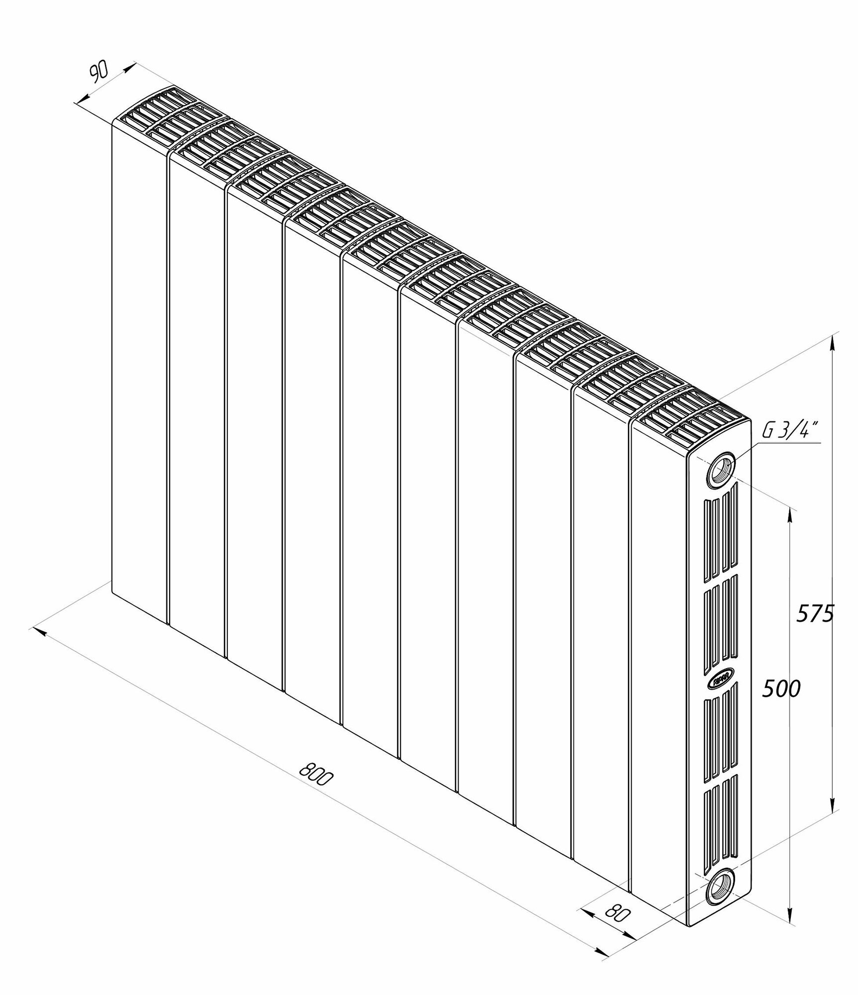 Rifar SUPReMO Ventil 500 - 8 секций нижнее правое подключение