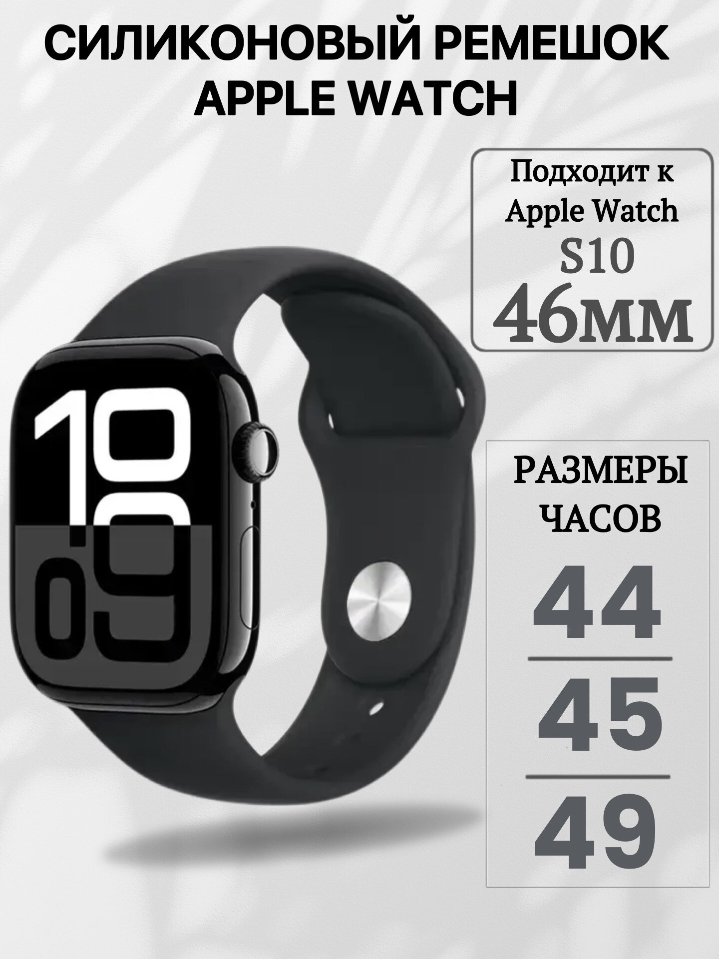 Силиконовый ремешок для Apple Watch 42/44/45 mm, черный, размер s/m