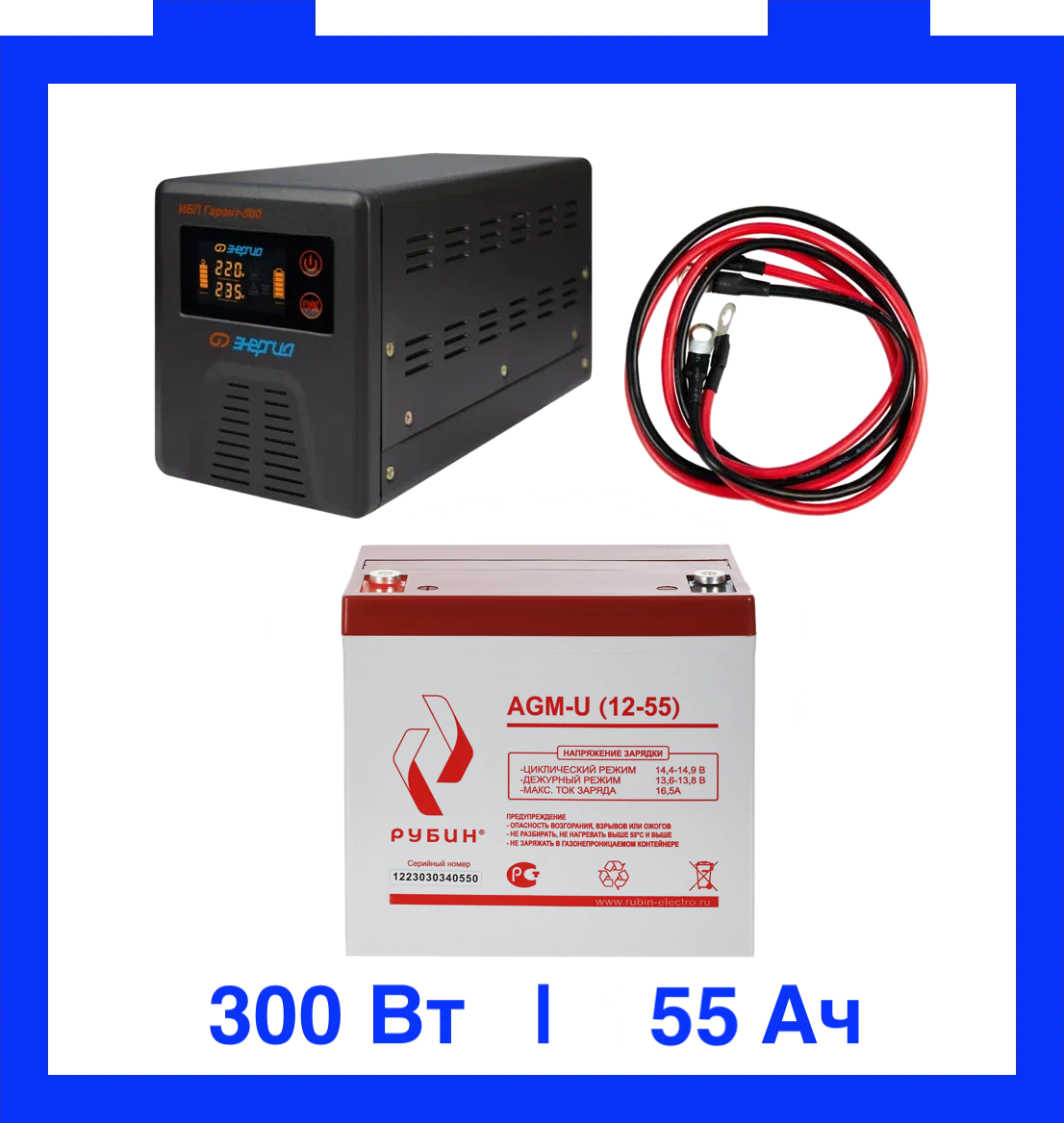 ИБП Гарант 500 [300Вт] с аккумулятором 12В 55Ач Комплект для котла NRG4YOU