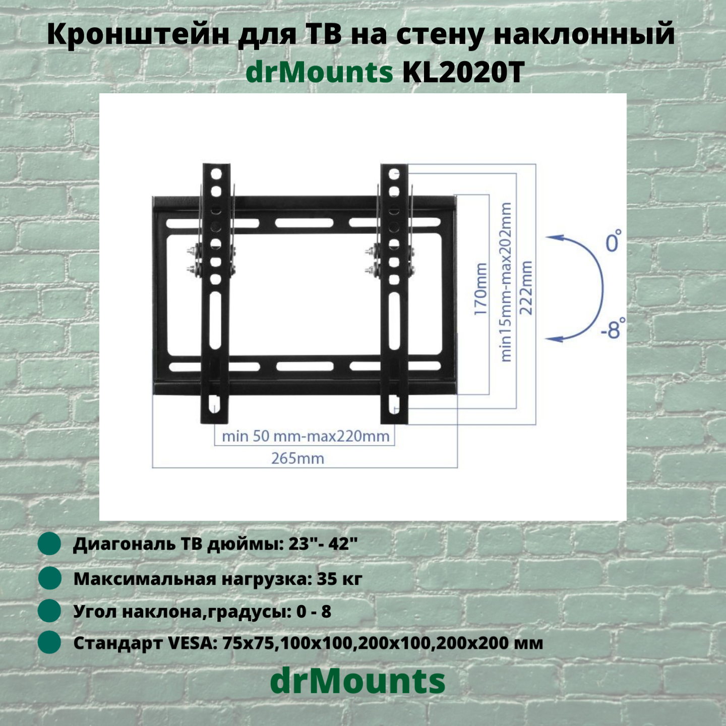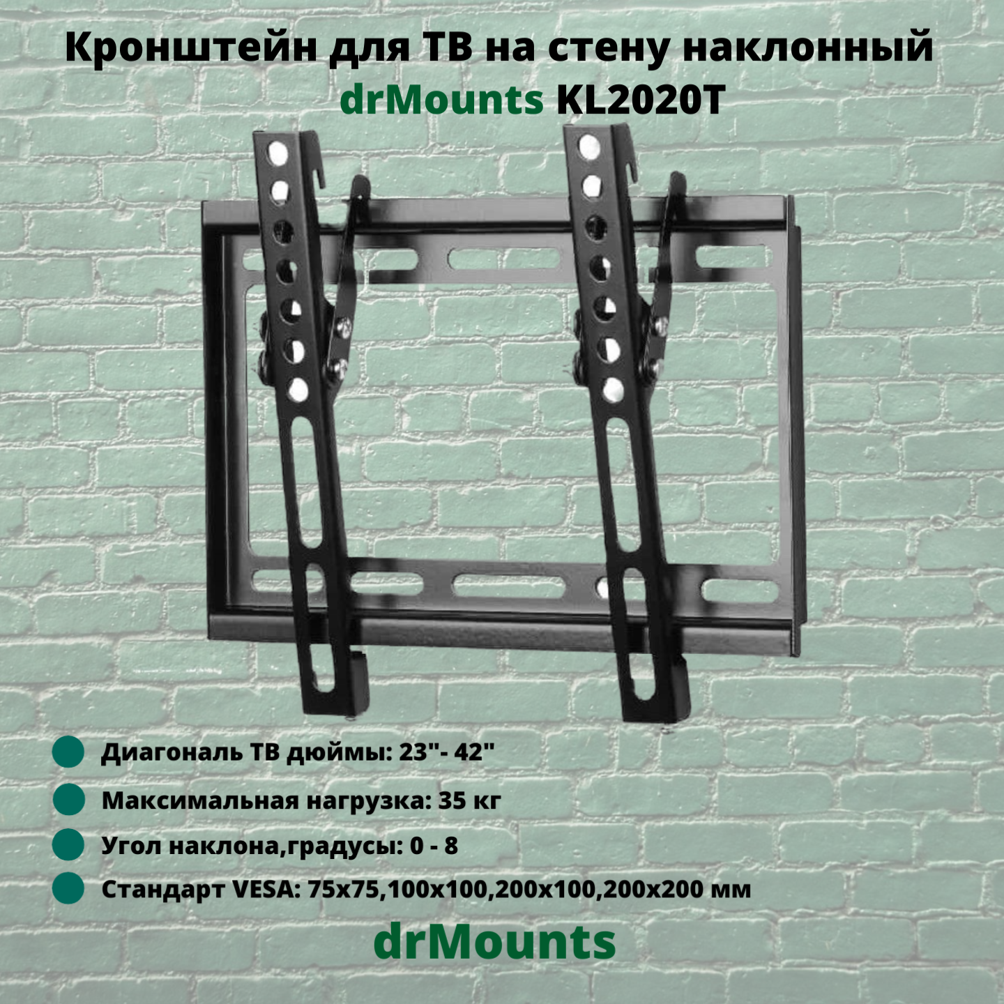 Кронштейн настенный для TV/монитора drMounts KL 2020T, 23"-42", VESA 75x75мм-200x200мм, наклонный, до 35 кг (KL 2020T)