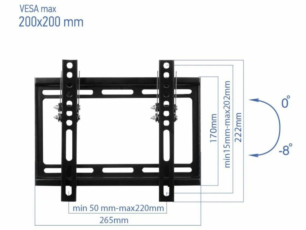 | Минусы: | товар не соответствует заявленным характеристикам - не подходит для ТВ с крепежом VESA200x200, из-за близко расположенных отверстий головки разных болтов начинают мешать друг другу.