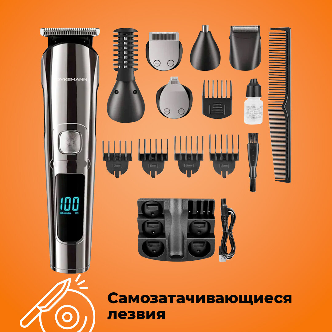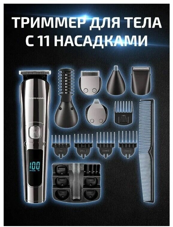 Триммер-бритва мужской для бороды и волос DYKEMANN BARTHAARE GR-24/11 насадок/90 минут от аккумулятора интересное:
