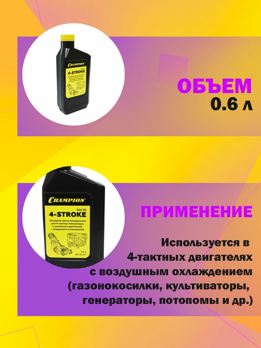 Масло 4-х тактное CHAMPION SAE 30 0,6 л минеральное