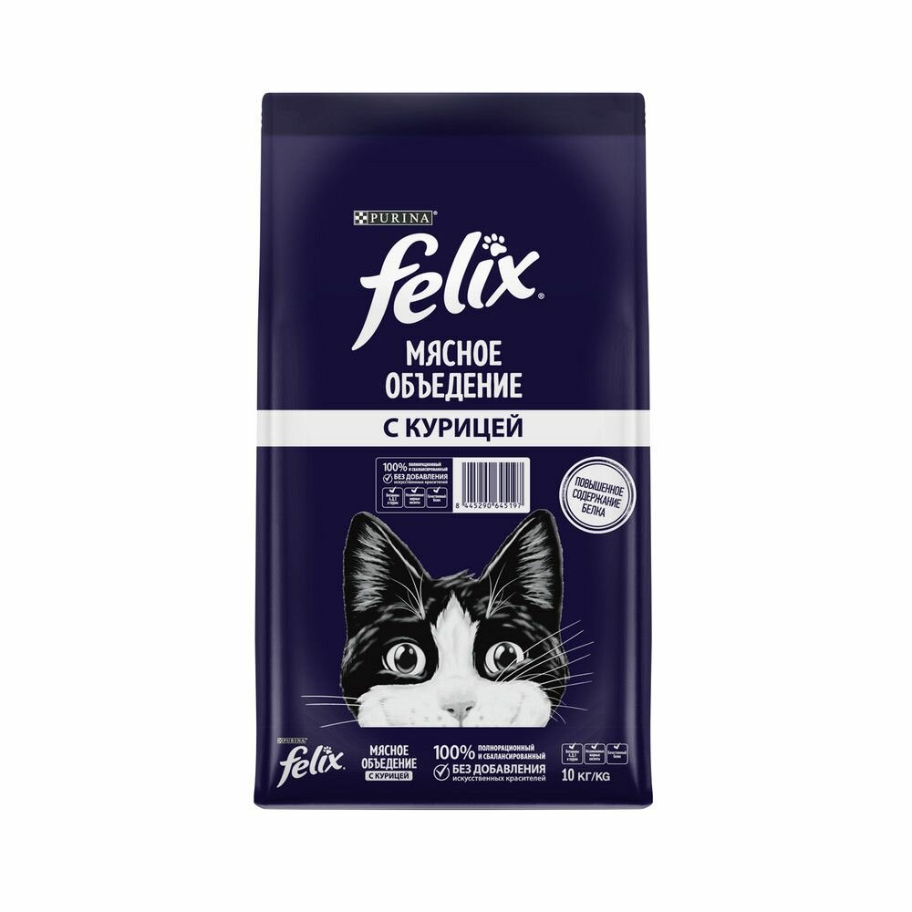 Сухой корм для кошек Felix Мясное объедение, курица, 10кг