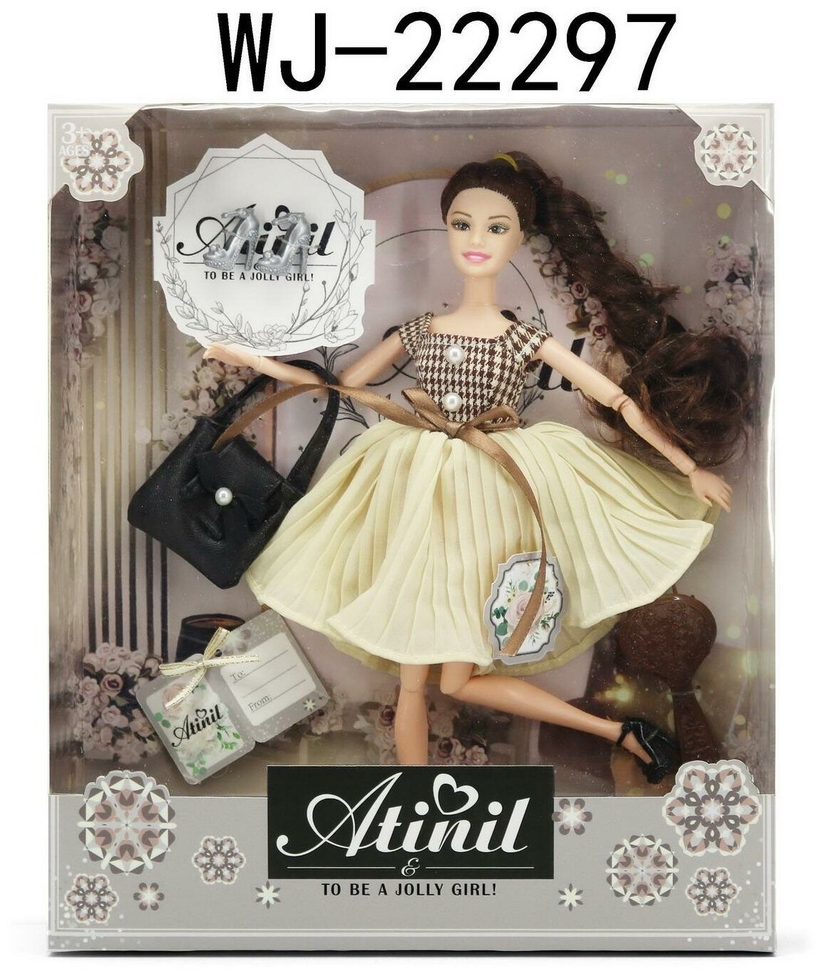 Кукла ABtoys Современный шикв платье с плиссированной юбкой, черная сумка, темные волосы 30см