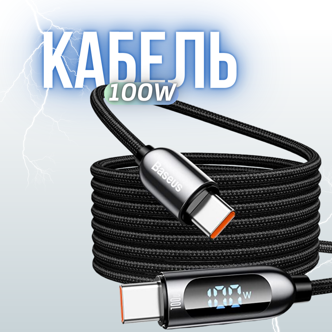 СохранитьКабель Baseus Display Fast Charging Data Cable Type-C to Type-C 100W 1m Black (CATSK-B01) интересное: