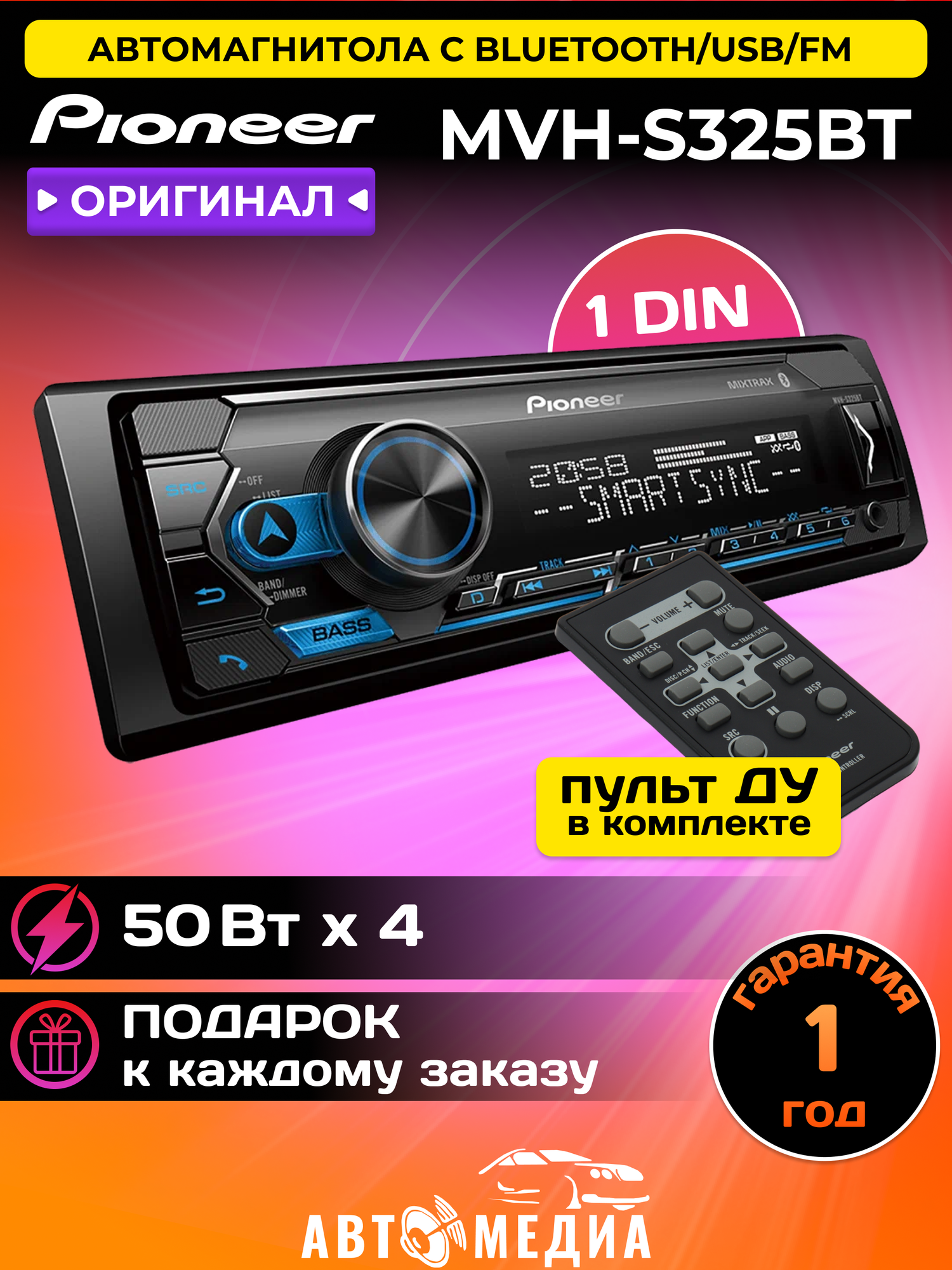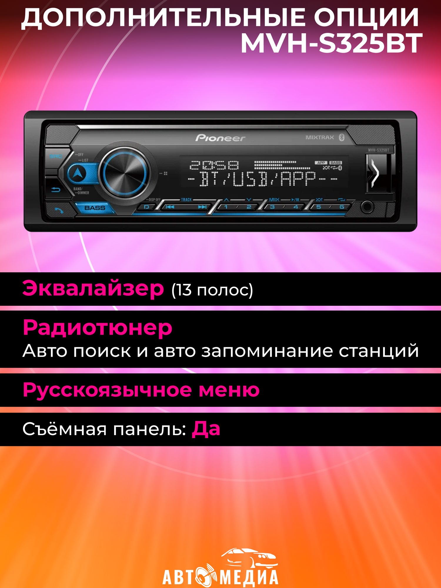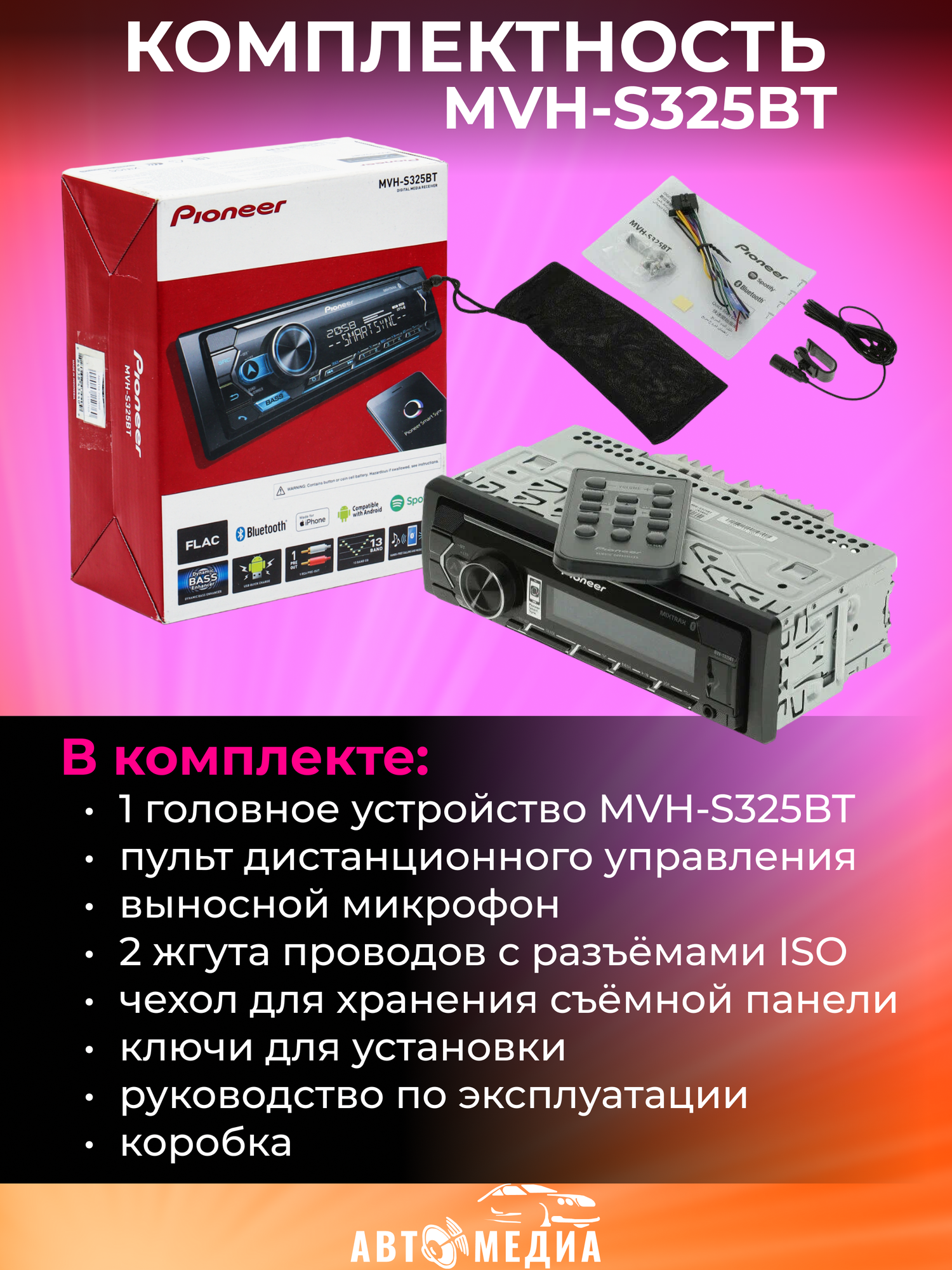 Магнитола автомобильная Pioneer MVH-S325BT 1RCA, пульт ДУ, Bluetooth интересное: