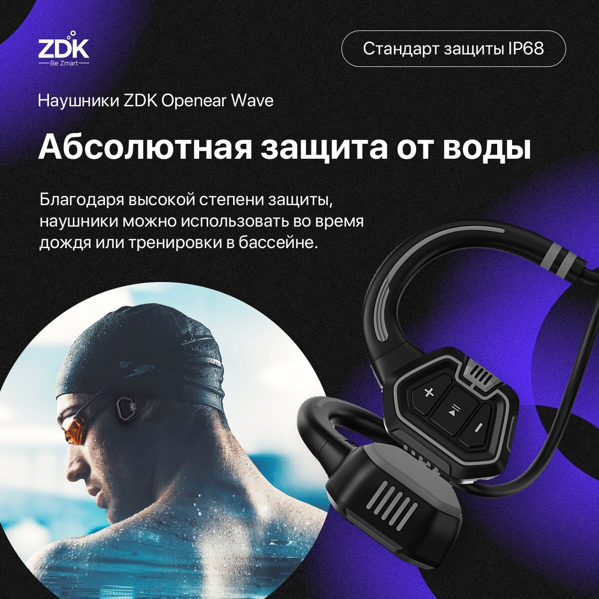 Наушники Zdk Openear Wave водозащищенные, синие (openearwaveblue)